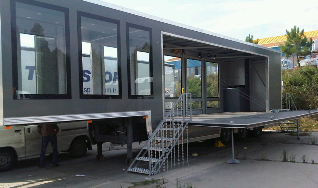 Yan tarafı açık haliyle her tür pazarlama ve reklam etkinliği için platform oluşturan PromoTruck, cam yüzeyleriyle aydınlık ve ferah kapalı kullanım imkanı sağlıyor... Elektrikli kumanda ile açılabilen sahnesi, alüminyum küpeşteleri ile etkinlikler için şık bir görünüm oluşturuyor.